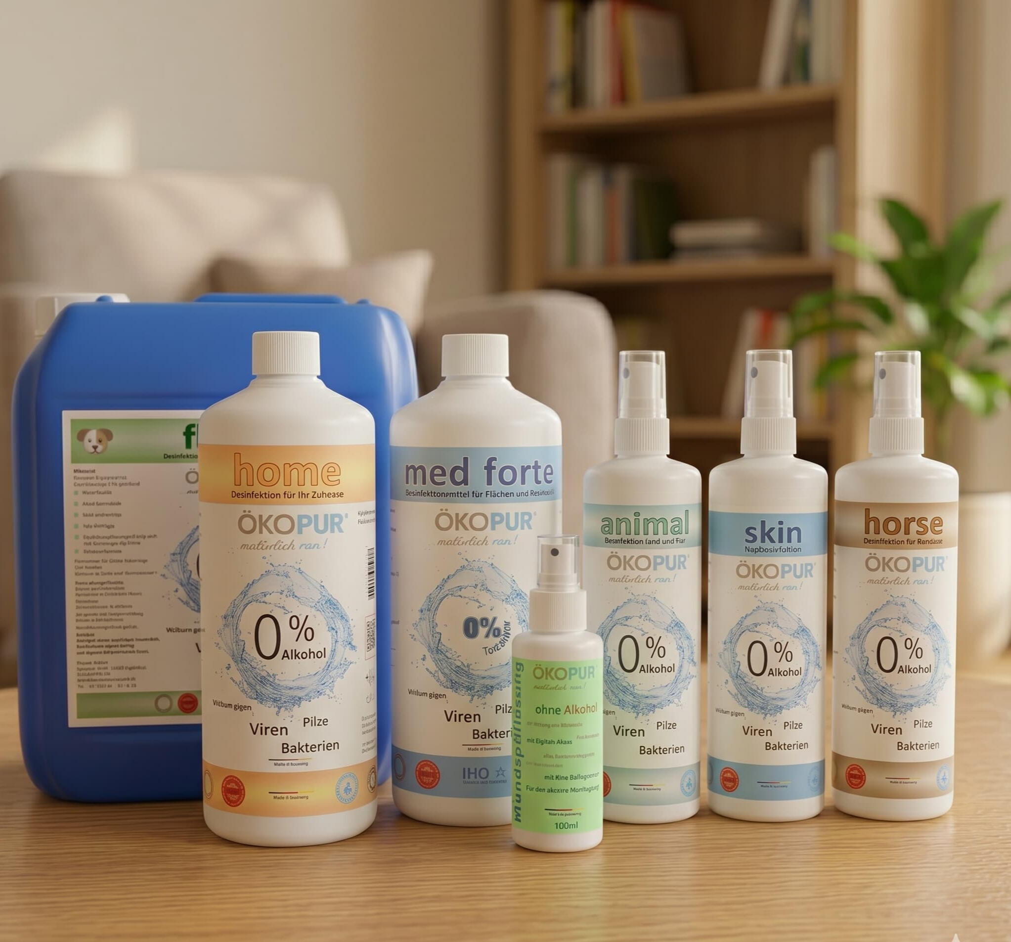 Ob für Ihr Zuhause, die professionelle Praxis oder Ihre geliebten Vierbeiner – ÖKOPUR bietet spezialisierte Hygiene ohne Kompromisse.Unsere Produktfamilie basiert auf demselben reinem Wirkprinzip: 100 % alkoholfrei, hocheffizient und inspiriert von der Natur. Wir haben für jede Anforderung das passende Format entwickelt – vom praktischen Spray für unterwegs bis zum Großgebinde für die professionelle Kaltvernebelung.ÖKOPUR home: Sicherheit für die ganze Familie.ÖKOPUR med forte: Maximale Hygiene für sensible Bereiche.ÖKOPUR animal & horse: Desinfektion rund um das Tier.ÖKOPUR skin: Die alkoholfreie Alternative für die Haut.ÖKOPUR flora: Desinfektion im Pflanzen- und Gartenbau